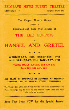 The Puppet Troupe started its post-War professional life in 1948 and the Belgrave Mews Puppet Theatre was founded in 1951. It was the first permanent puppet theatre in the UK and operated professionally until its closure in 1961. After the building was storm damaged in 1976 it was sold and the Collection was moved to Jordanhill College. The Troupe consists of 106 Glove and Hand Puppets, 61 rod-puppets, 43 marionettes, 10 miniature rod puppets and 10 antique Asian marionette and rod puppets. Additional scenery, stage properties portable fit-ups have survived together with a full business archive, scripts, scrapbooks, press clipping files plus photos, programmes & posters, personal memorabilia, and both published and unpublished works. The Troupe now forms the basis for establishing a permanent museum within Scottish Mask & Puppet Centre.